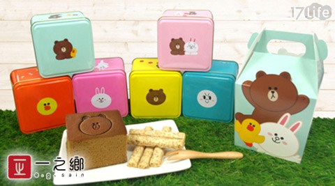 平均每盒最低只要165元起(含運)即可購得【一之鄉】LINE FRIENDS授權-限量手提蛋糕鐵盒3盒/6盒/8盒(141g5%/盒),多種口味任選。